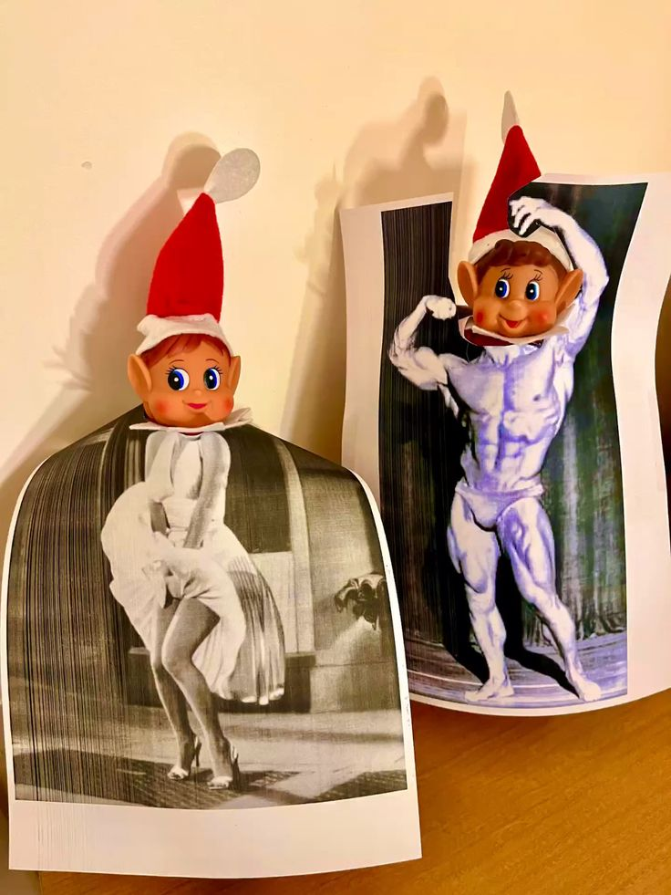 These cheeky elves decided to hit the runway and the gym! One channels a classic movie star moment while the other flexes his muscles like a pro bodybuilder. Just print out the outfits, tape them to your elves, and you’ve got an instant comedy duo ready for some holiday laughs!
