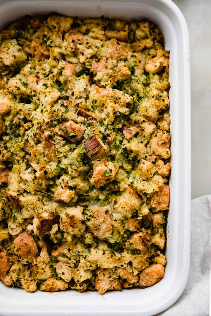 This stuffing smells like every Thanksgiving memory layered into one bowl. Soft inside, crisp edges, lots of herbs… it’s the side everyone waits for.