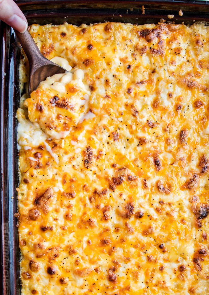 This dish is dangerously good. Heavy, creamy, cheesy… people scoop giant portions without thinking.