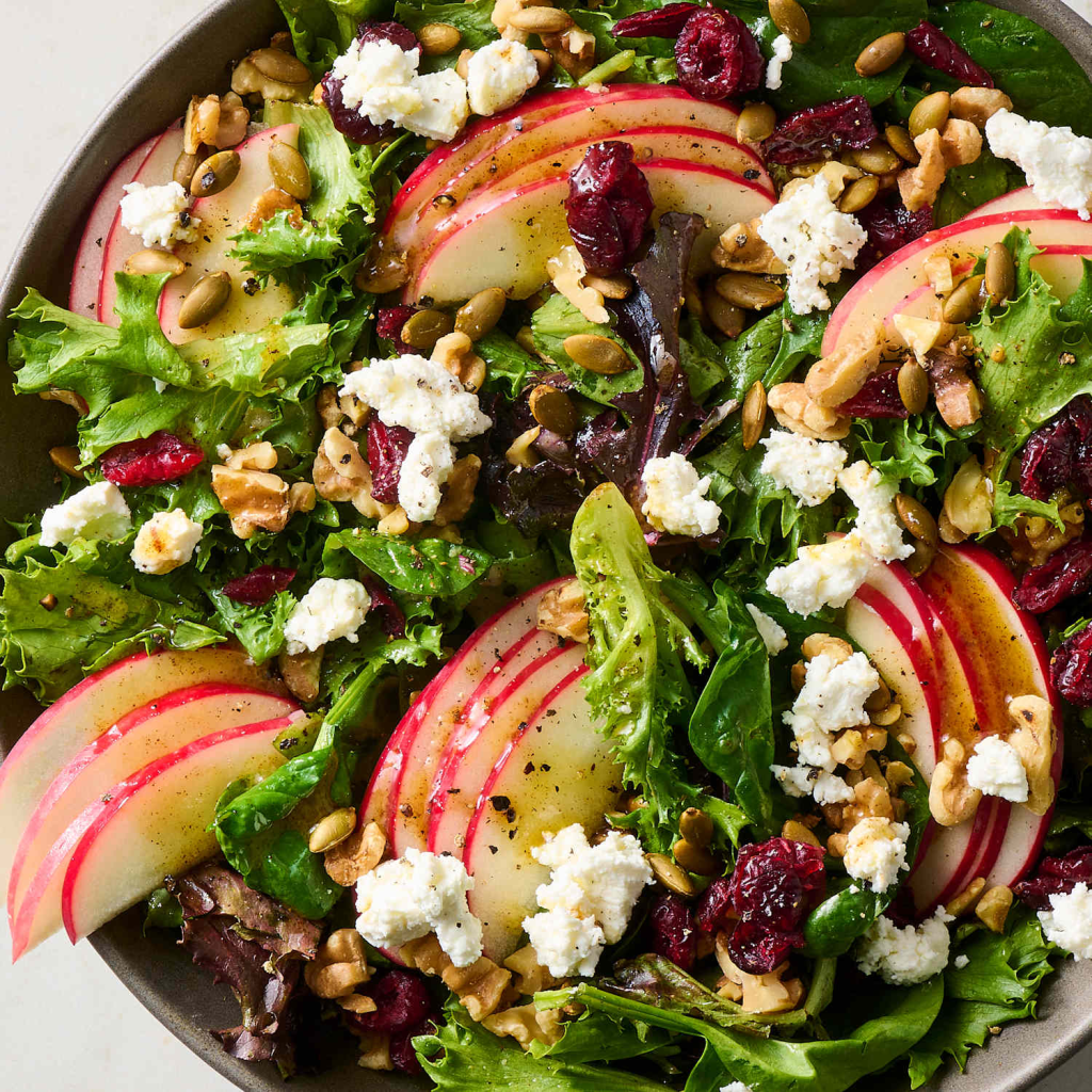 Crisp apples, crunchy nuts, fresh greens—this salad brings a “breather” moment to the table. Light but still full of flavor.